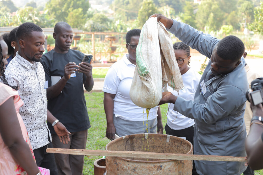 2022 2nd February A report from earlier in the year: For compost making participants were engaged in separating decompostable materials from non-decompostable materials .Ridding soil of non-decompostable materials improves on its fertility, water infiltration within the soils and the formulation of humus which is nutritious to plants and crops. The biodegradable materials collected by farmers such as weeds were used to make compost and humus and the non – decompostable materials burnt in a controlled way. Some training was co- facilitated with 2 intern students from Uganda Martyrs University where participants learnt about different agronomic practices.