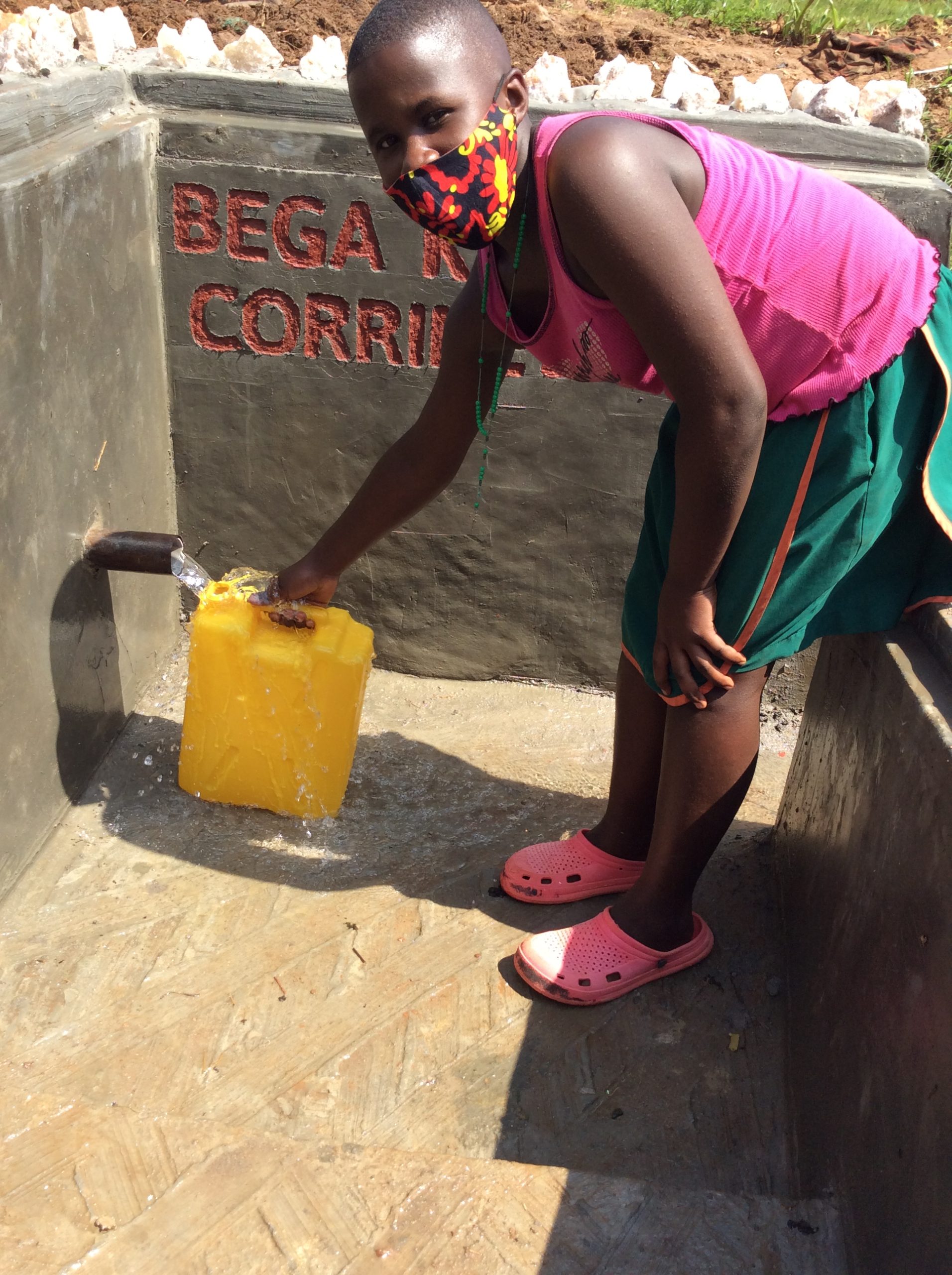 Bread and Water for Africa Spring # 22 This Protected Spring is found in Kibanga village, Lwaggwa/Kibaanga Parish, Kammengo Sub County, Mawokota County, Mpigi district in Uganda. It is used by Kibanga village and part of Mpondwe village, that is over seventy (70) households and one church. It was an open water source with water that was not safe for use, community members had a big challenge of getting water especially clean water. They only had hope when it rained, and this was both good and bad for them. It was good that they could collect/harvest rainwater and it was bad because the water of the well got dirtier. Community members actively participated during construction of the well. An education session was conducted about proper use of the well and its maintenance, Water Hygiene and Sanitation. Members elected a water committee including children’s representatives